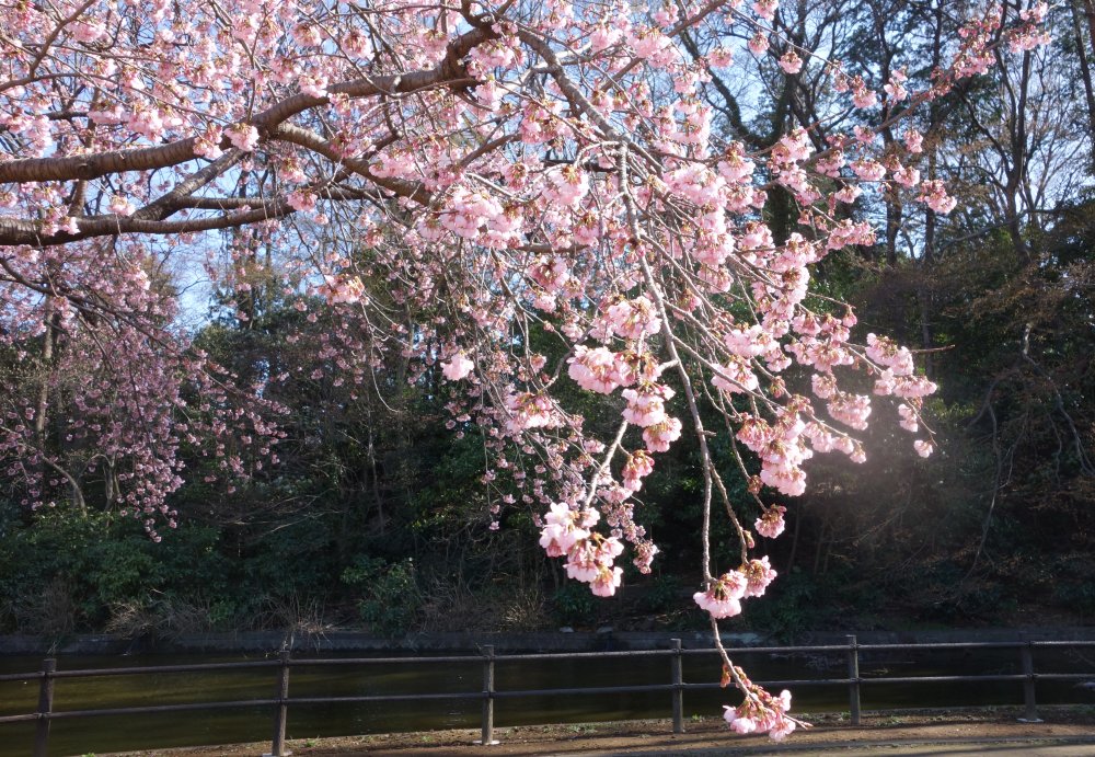 公園の大寒桜は7分咲きといったところ。