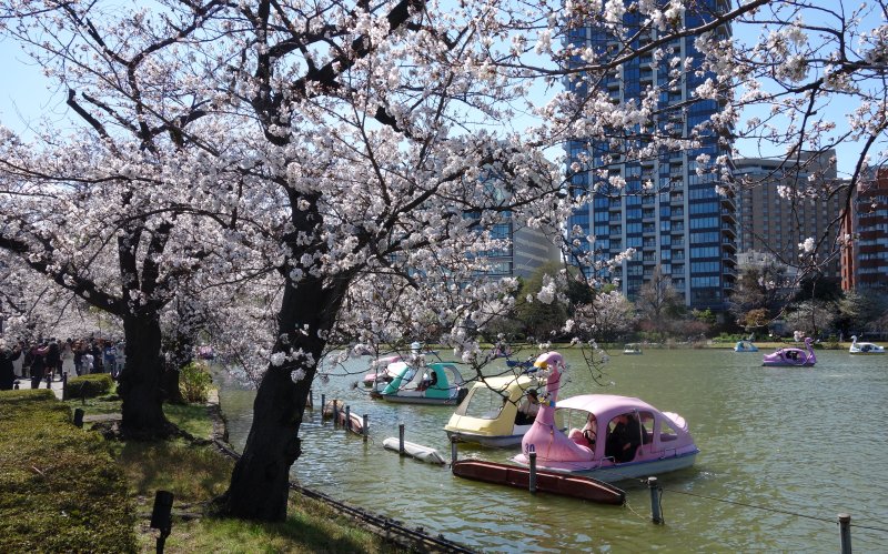しのばずの池には、たくさんのボートが。